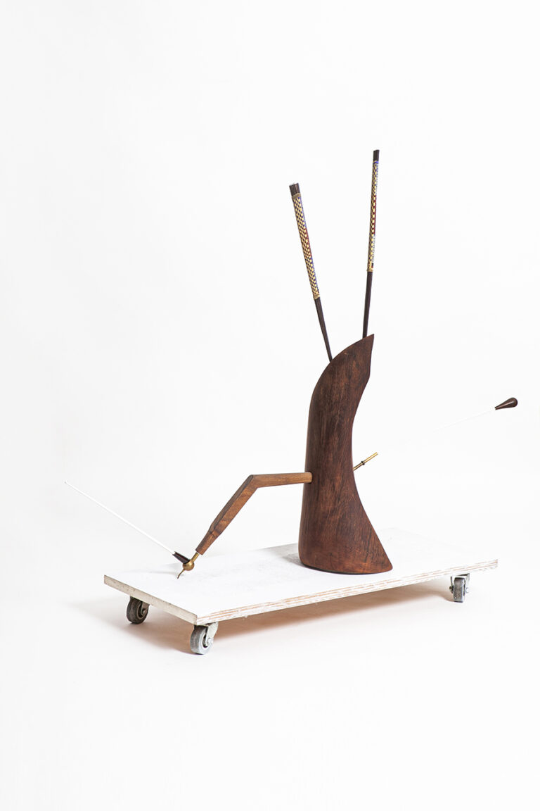 Madeiras diversas, batuta, metal, ferro, tubo termo retrátil e tinta acrílica