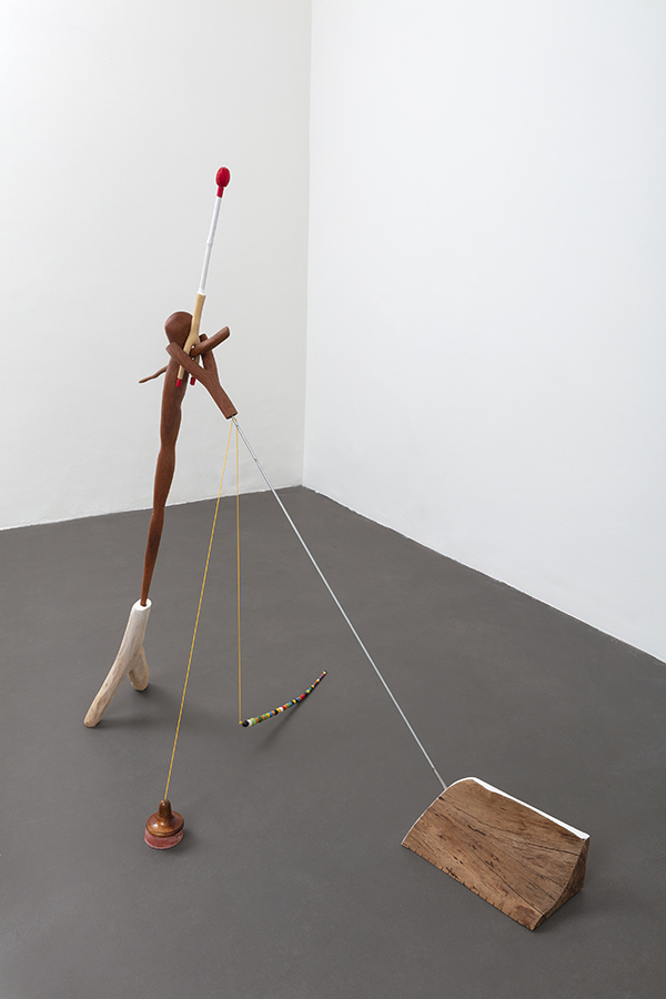 Madeiras diversas, ferro, fibra de vidro, aço, cobre, barbante, tinta acrílica, tubo termo retrátil e bandagem