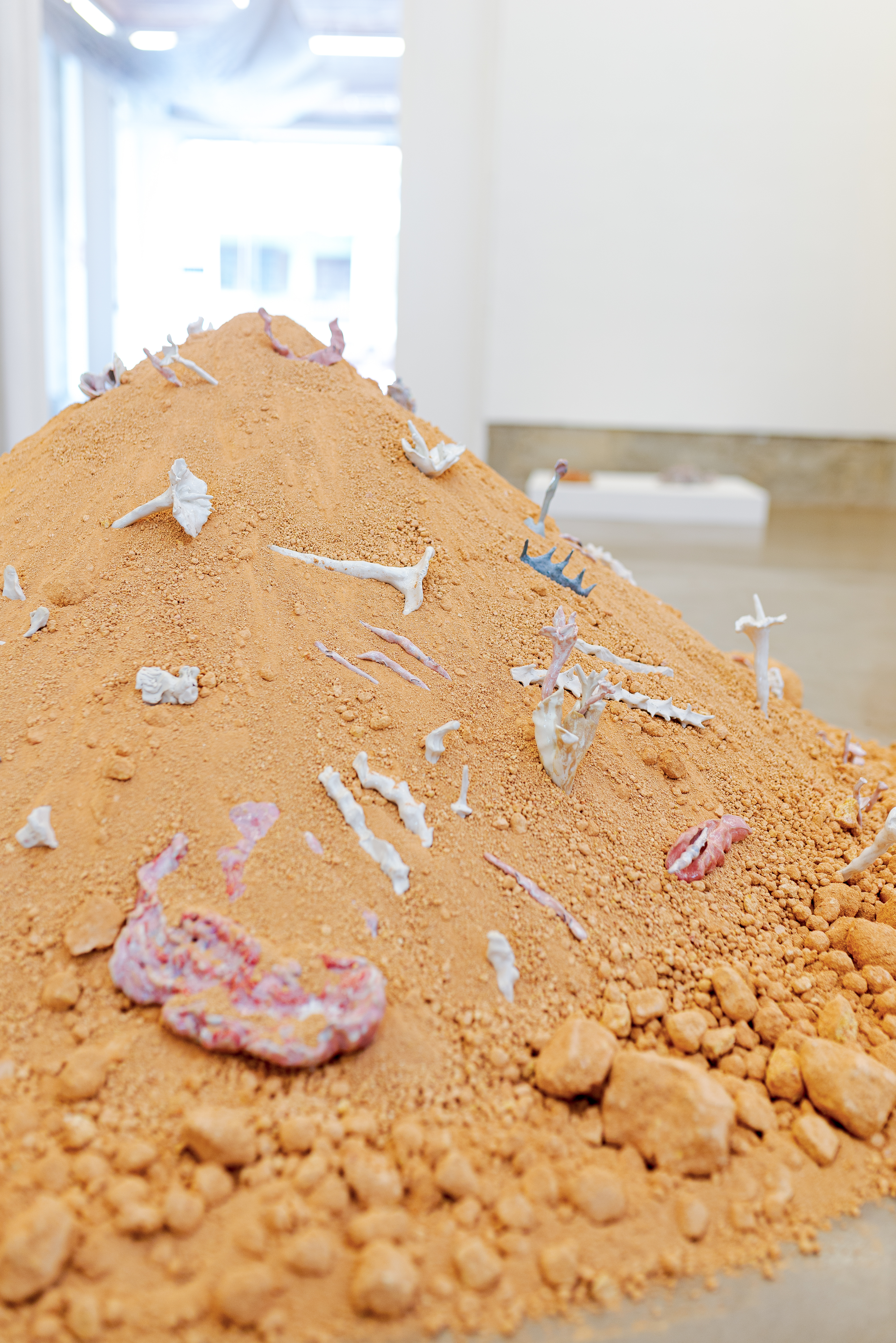 O espaço da galeria é território reencantado. Sonhado como chão virado do avesso, onde a terra aparece, a exposição constrói uma proposta de “florestania”, algo no sentido daquilo que o pensador Ailton Krenak entende como um modo de viver a floresta dentro de si, contestando as ordens urbanas e lineares que limpam, separam, silenciam.