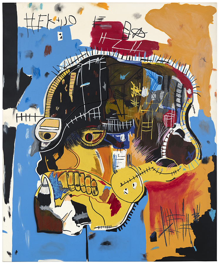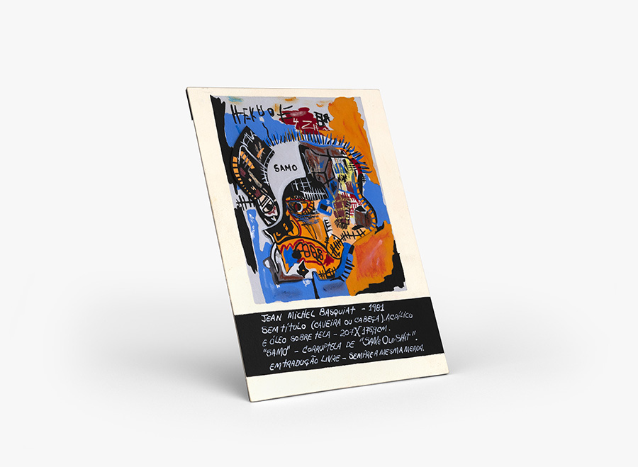 Por isso a mesma pintura de Mondrian gera duas pinturas: uma maior outra menor, sendo que a maior é de fórmica; a primeira estrela da direita, situada na extremidade superior da bandeira americana realizada por Jasper Johns, é um objeto -estrelado, sem dúvida-, feito de porcelana; a parte do osso frontal da Caveira – Cabeça, de Basquiat, pode ser deslocada como esses livros infantis interativos, repletos de surpresas súbitas; o branco e preto que notabilizou a Guernica, resvala parcialmente na cor. Há outras intercorrências, mas convém não avançar por esse território misterioso composto pela fusão da arte, com a ciência e a imaginação, melhor deixar o leitor a sós.