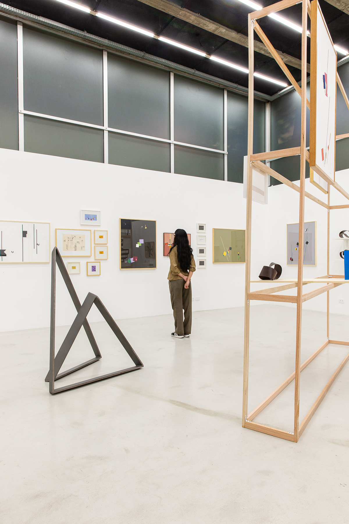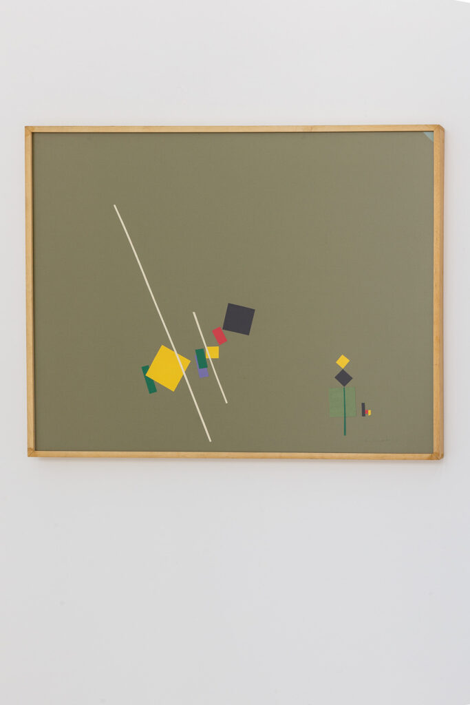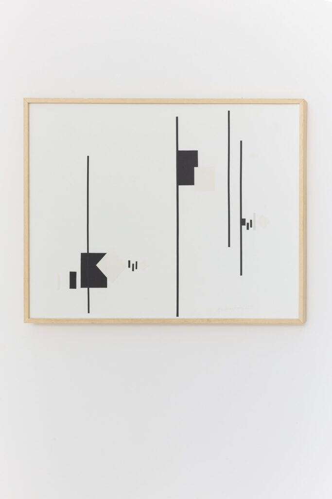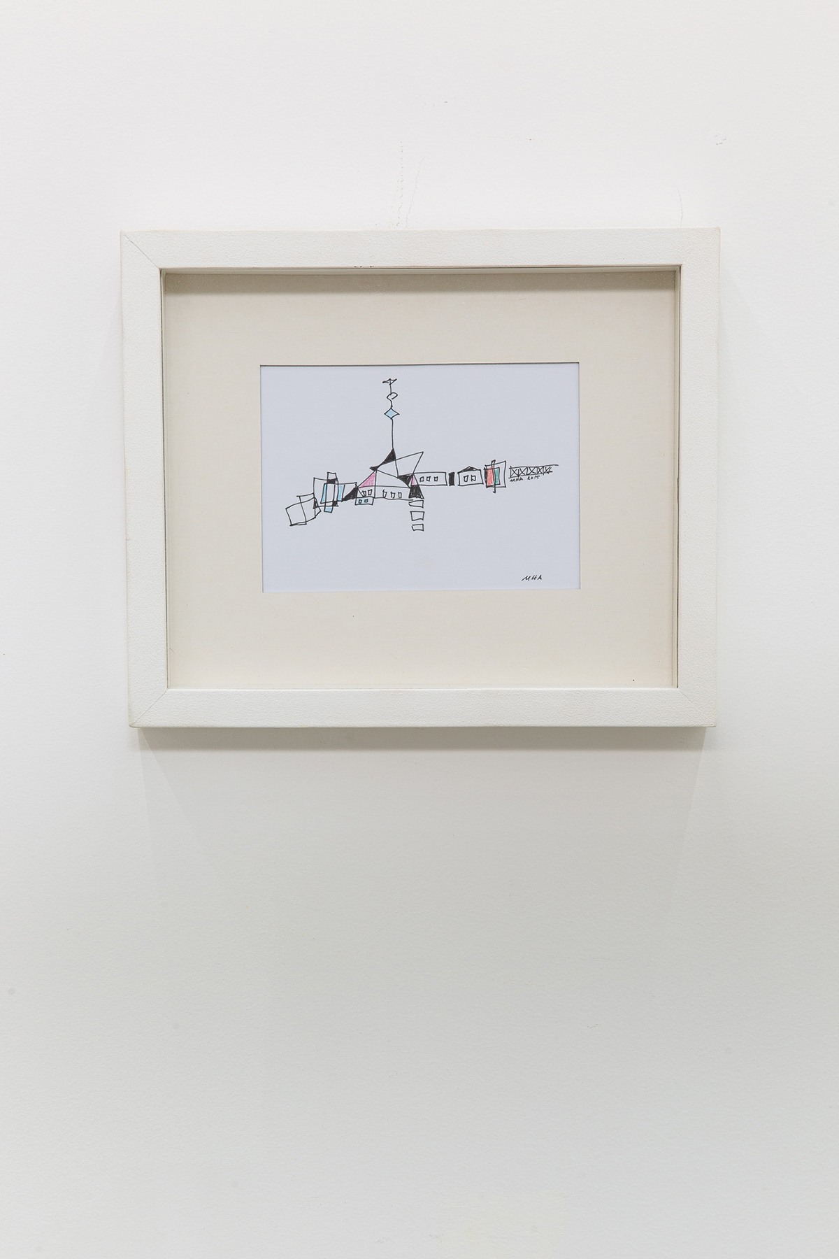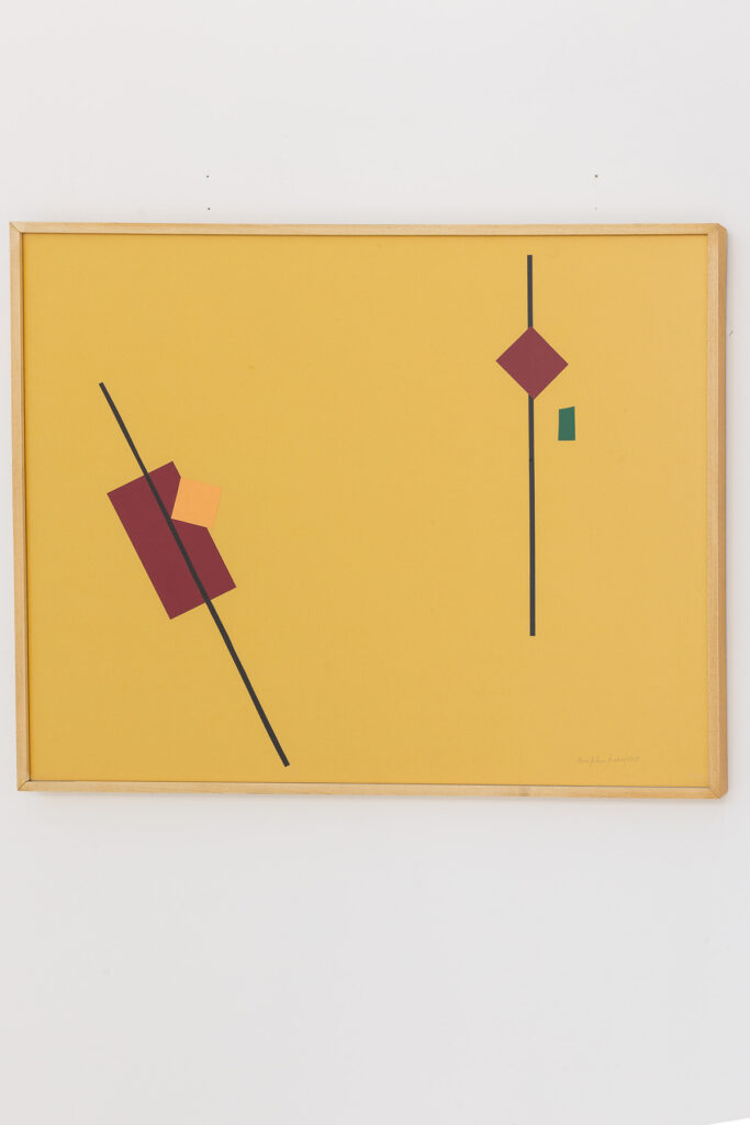 Há dois pontos de contato logo reconhecíveis, não obstante essas particularidades do percurso de cada um: o primeiro é a geometria, marcante nas séries aqui presentes como um idioma comum, mas que tem fundamentos específicos para cada um. Por outro lado, o segundo ponto, ao se observar a datação de algumas obras, é a revelação de um aspecto interessante: é no início dos anos 1970, quando Maria Helena se desloca da abstração geométrica (e após uma retomada de pinturas gestuais), que a artista realiza Fotograma Espacial, uma colagem na qual ela responde brevemente a influência da Pop. Mais ou menos nesse mesmo período, Almandrade cria alguns de seus primeiros desenhos e gravuras nos quais também se cruza a Pop (a composição inspirada nas histórias em quadrinhos) com a limpidez e ascetismo de traços com reverberações simultâneas da arte conceitual, da poesia concreta e do Poema Processo. Temos naquele momento, portanto, do ângulo de Maria Helena Andrés, um ponto de chegada, fruto de uma vivência e acompanhamento da abstração geométrica e construtiva no Brasil vinda desde os anos 1950, enquanto para o artista baiano as questões artísticas dos anos 1970 são o seu ponto de partida, e os desafios da arte concreta, do neoconcretismo e outras tantas vertentes construtivas já são reconhecidos como um legado histórico.
