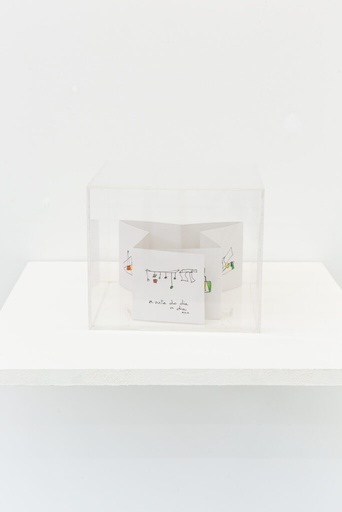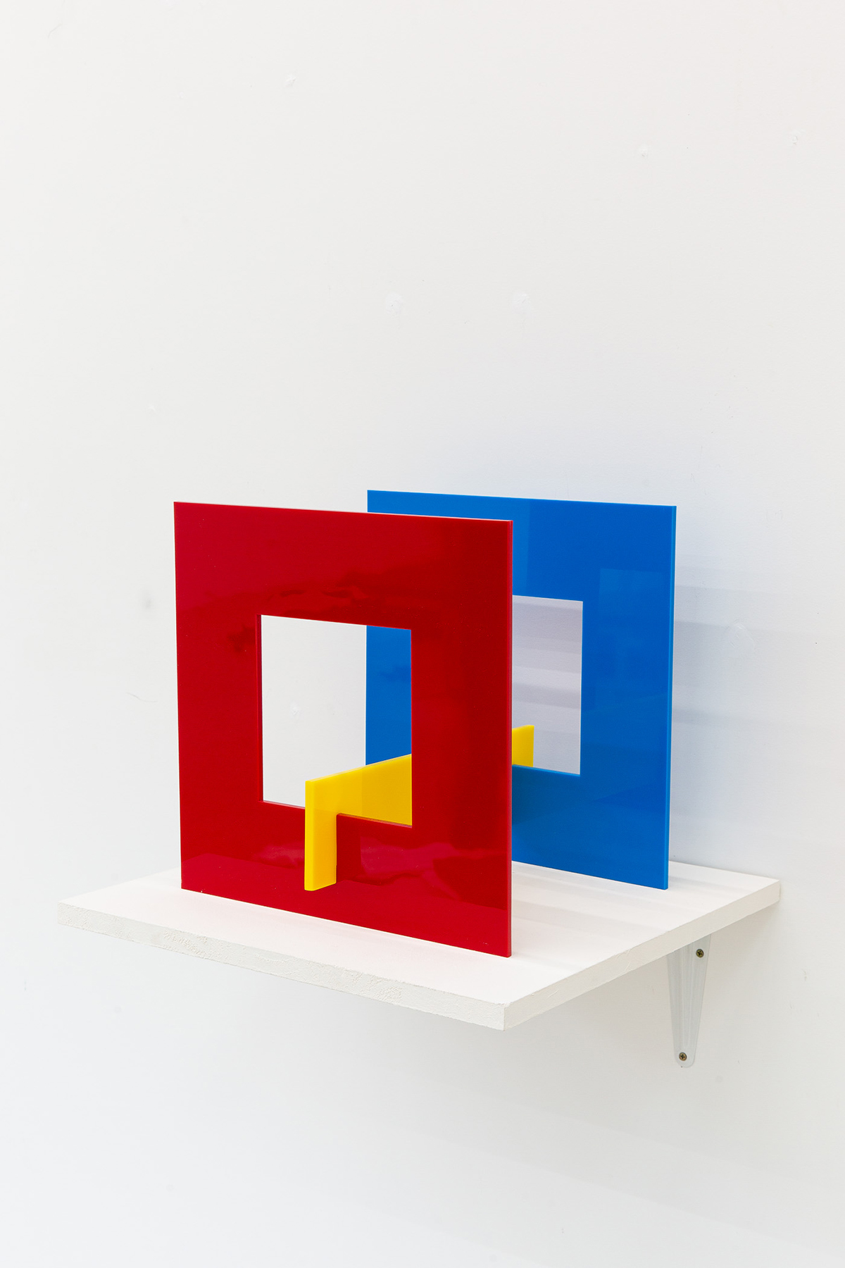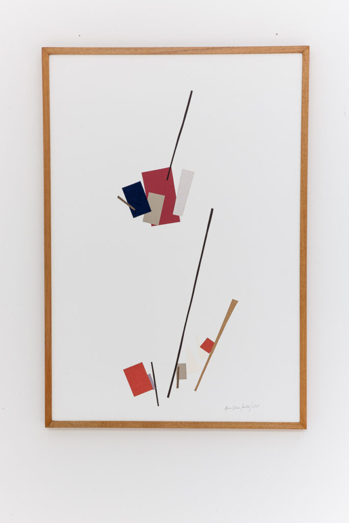 Mas se trouxemos aqui uma breve nota histórica, devemos acentuar que nesta exposição, as obras mais antigas especificamente selecionadas nos permitem pontuar aspectos dos trabalhos mais recentes, chamando-nos atenção, no caso de Maria Helena Andrés, não só para a intensidade de seu ritmo de trabalho ainda hoje quanto para sua retomada das composições geométricas, revisitando sua própria produção. Se, além das colagens, considerarmos as esculturas que produz, nas quais acontece a transição do plano para o espaço, temos mais uma frente de diálogo com Almandrade, que executa manobra semelhante (e nas duas direções – tanto do plano para o espaço quanto inversamente), a qual se acrescenta a poesia, que estabelece uma situação na qual as fronteiras entre pintura, escultura, poesia e objeto se desfazem.